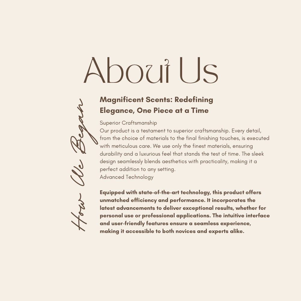 At Magnificent Scents, we believe that a candle is more than just a source of light—it’s a vessel of tranquility, a touch of elegance, and a sensory journey. Our candles are thoughtfully crafted to transform any space into a haven of serenity and sophistication. Each Magnificent Scents candle is made from premium, eco-friendly ingredients, including sustainable soy wax and natural cotton wicks, ensuring a clean and long-lasting burn. Our curated collection of fragrances, inspired by nature and the world's most enchanting places, brings a touch of luxury to your everyday life. From the refreshing zest of citrus groves to the soothing embrace of lavender fields.
